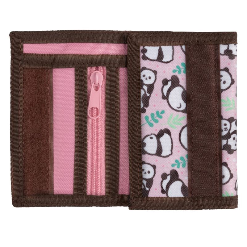 Портмоне със закопчаване с велкро. Вътре има джоб за монети с цип, едно отделение за банкноти и допълнителни отделения за документи.