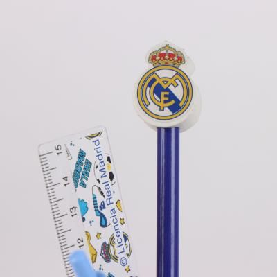 Ученически комплект Real Madrid от 4 части - моливник за бюро, линия, химикалка, молив с гума-фигура