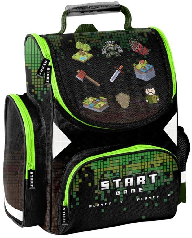 Ергономична раница с 1 отделение с преграда, един преден джоб, 2 странични джоба - единият мрежест, другият с цип, твърд ергономичен гръб, подплатени презрамки, твърдо дъно, светлоотразителни елементи Размери 38х28х15 см