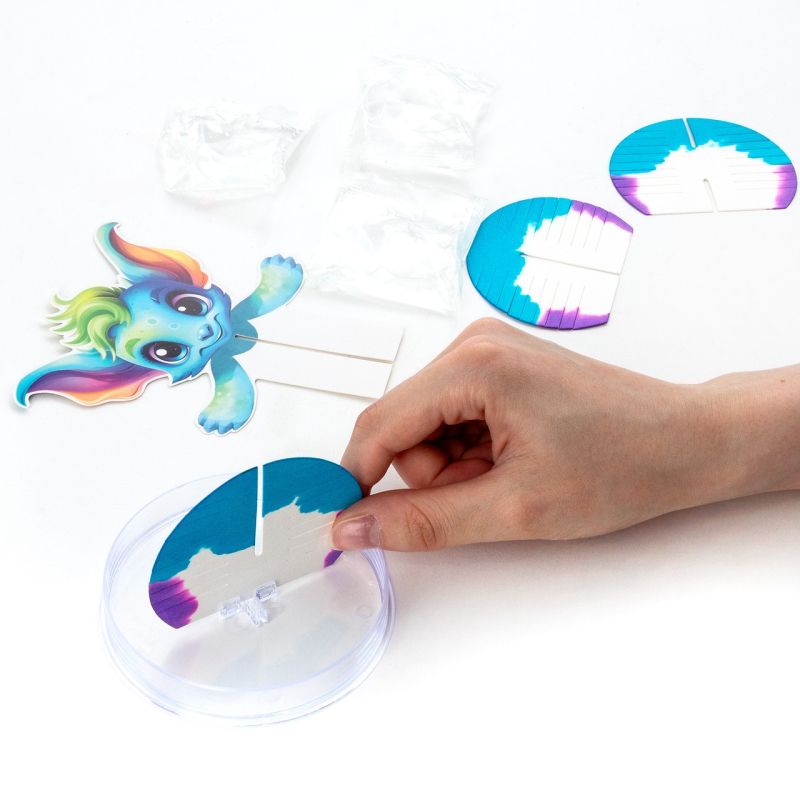 Този уникален комплект ще завладее всяко дете, което се интересува от наука и експерименти, както и тези, които обичат света на фантазията. Пакетът включва четири картонени парчета, основа и три специални торбички с течност. След като сглобите конструкцията, просто изсипете включената течност върху картонените парчета, за да започнете необикновения процес на цъфтеж. Само след час ще видите първите резултати – съществото е покрито с цветни кристали. Това е не само чудесна форма на игра, но и вдъхновяваща възможност за учене и развиване на любопитство към света. Перфектен подарък за млади изследователи!