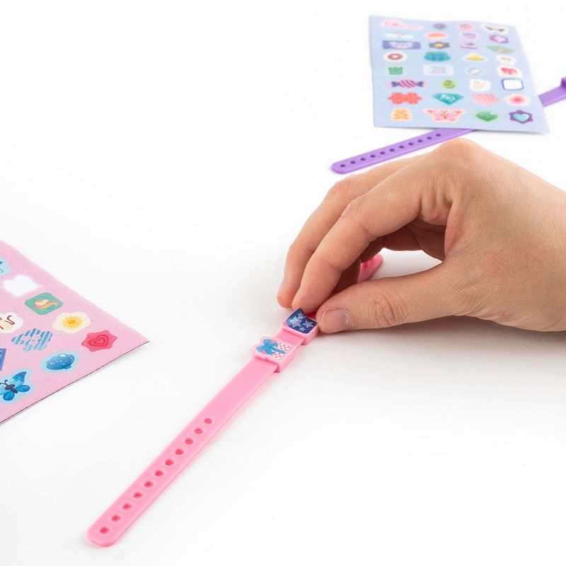 Този комплект за млади дизайнери на бижута включва две гривни в нюанси на лилаво и розово и 32 висулки, които могат лесно да се поставят и свалят. Всяка висулка може да бъде допълнително персонализирана с включените 64 стикера. Това е идеален подарък, с който да изразите индивидуалния си стил, а дори можете да споделите гривната си с приятел.