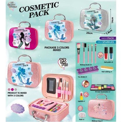 Комплект детски гримове в козметичен куфар е чудесен подарък за деца, които обичат да се гримират и играят на "възрастни". Такъв комплект обикновено включва различни безопасни за деца продукти, подредени в удобен и цветен куфар, който може лесно да се носи и съхранява.