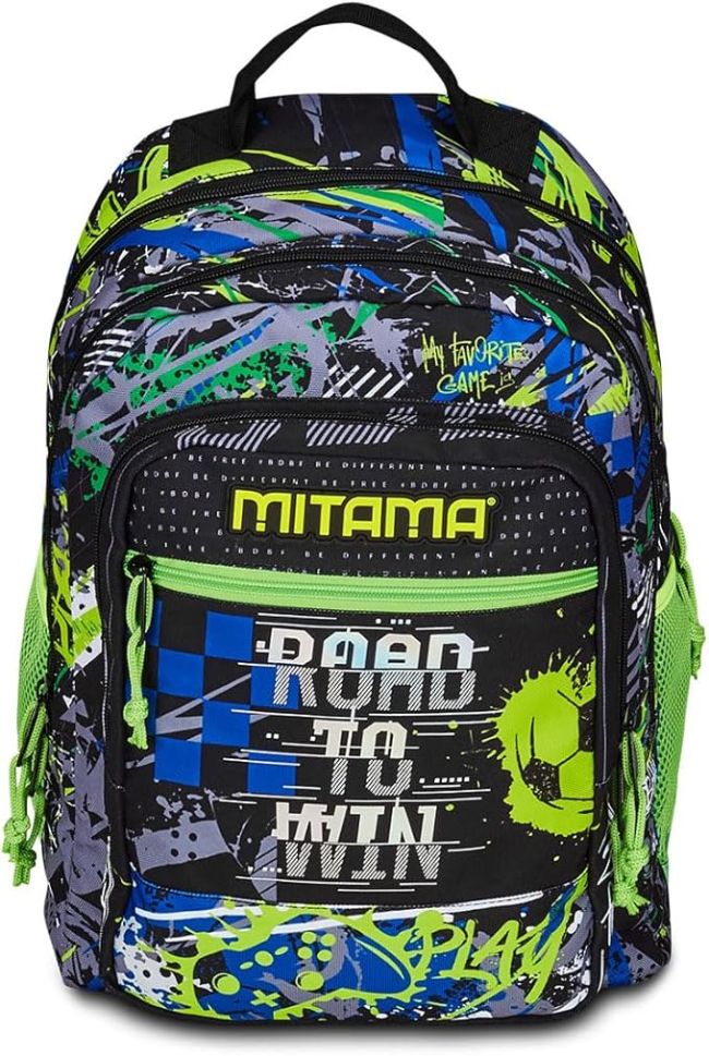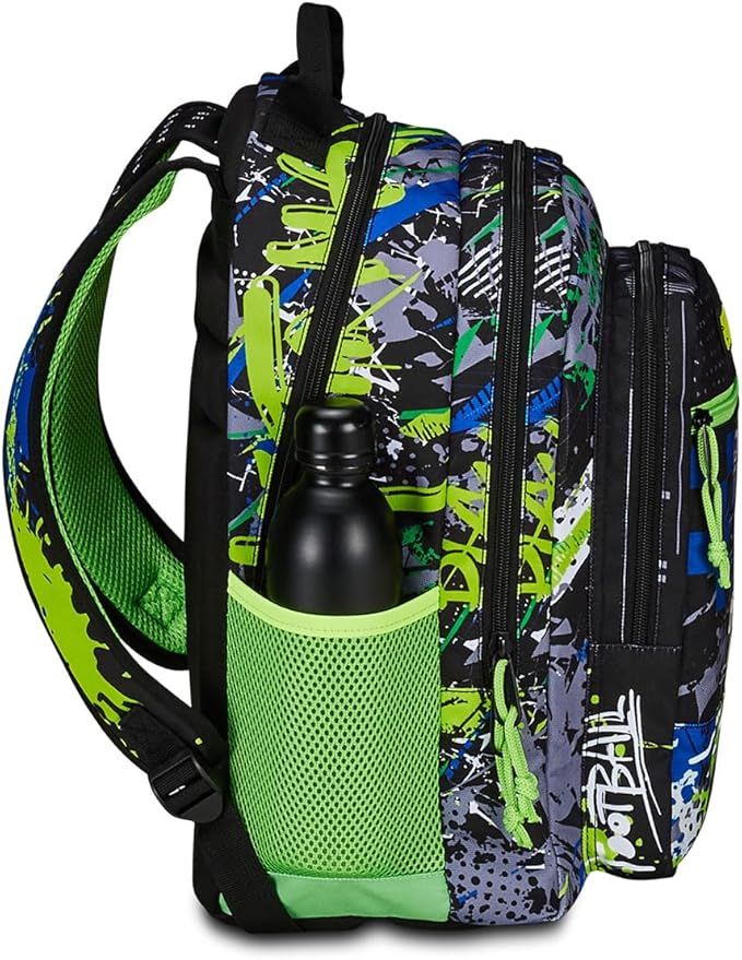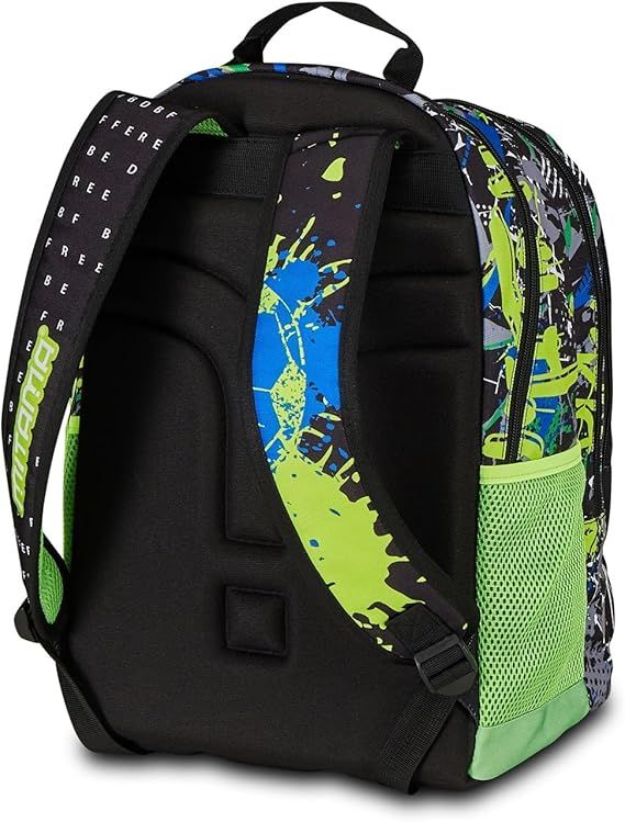 Висококачествена, ултра лека раница, изработена от водоустойчив материал. Разполага с 3 големи отделения и допълнителен джоб отпред за аксесоари. Гърбът и основата са подплатени с EVA, за да поддържат цялата тежест, дори когато детето бяга. Раменните презрамки са широки и меки в гъвкав пенопласт, а формата се адаптира към ширината на раменете. Раницата има два странични джоба от неопрен. Водоустойчив плат