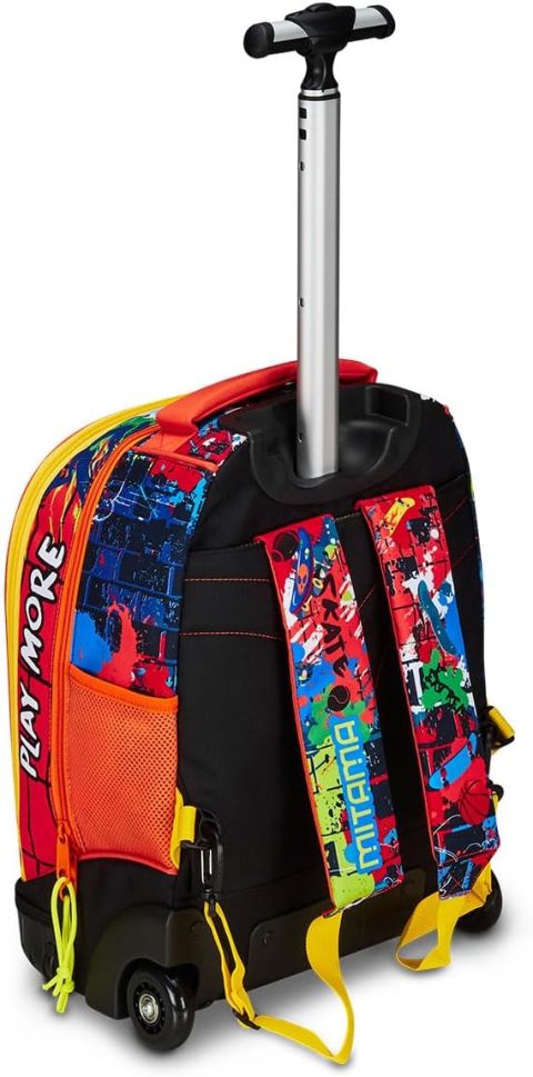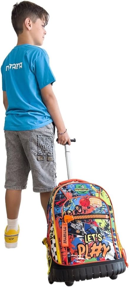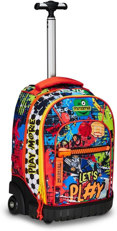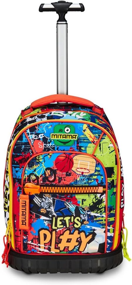 Раница с колела Mitama може да се ползва както за училище, така и по време на пътуване. Подсиленото пластмасово дъно гарантира супер здравина, а огромното вътрешно отделение ще побере всички необходими вещи. Разполага с голям преден джоб и с мегацип Mitama.