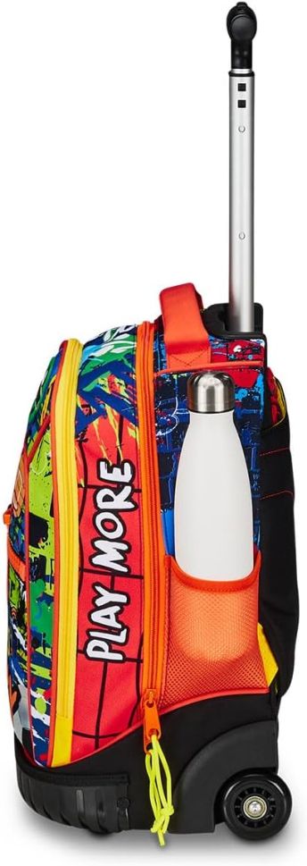 Раницата е с прибиращи се презрамки, благодарение на което може сами да изберете дали да я дърпате с телескопичната дръжка или да я носите на рамо.