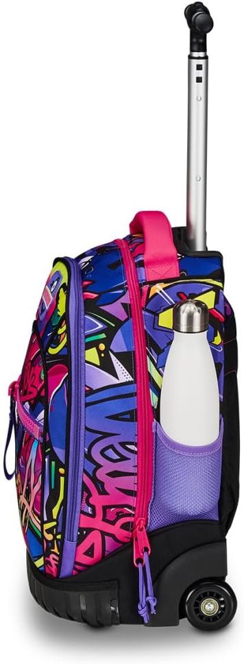 Раницата е с прибиращи се презрамки, благодарение на което може сами да изберете дали да я дърпате с телескопичната дръжка или да я носите на рамо.