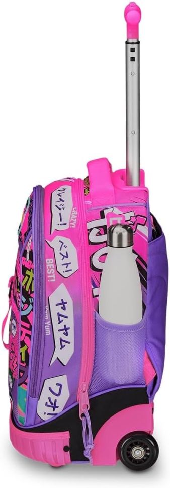 Раницата е с прибиращи се презрамки, благодарение на което може сами да изберете дали да я дърпате с телескопичната дръжка или да я носите на рамо.