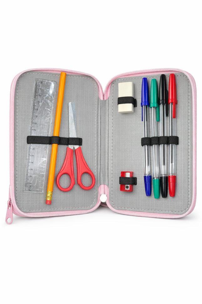 Този функционален несесер е идеалното решение за подредба на ученически, офис или творчески принадлежности. Изработен е от устойчив и издръжлив текстил, който предпазва съдържанието и гарантира дълготрайна употреба.