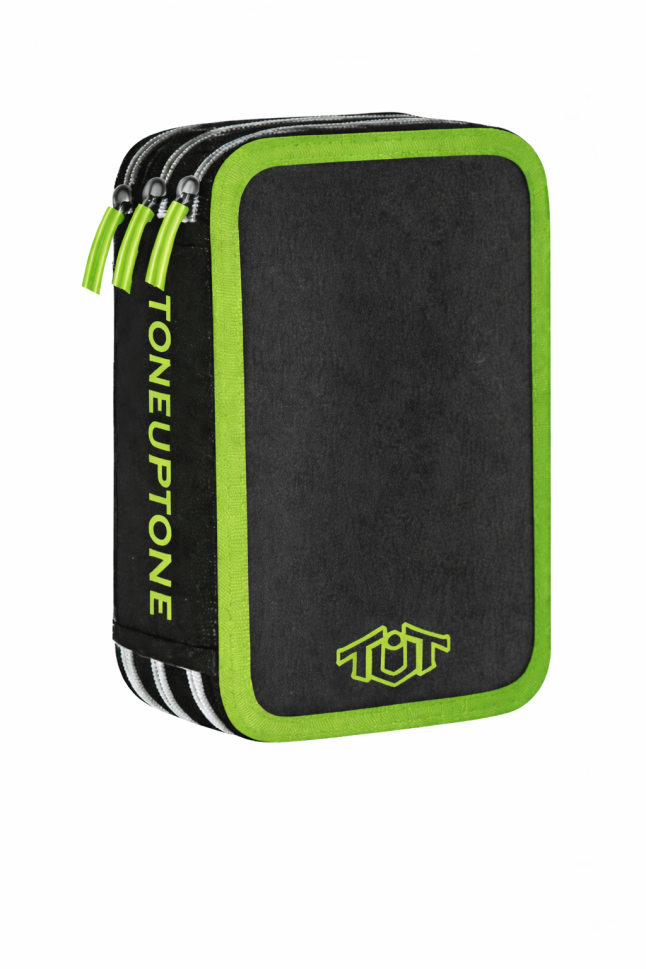 TUT Neon несесер с 3 ципа, ПЪЛЕН, зелени кантове