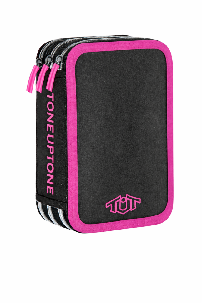 TUT Neon несесер с 3 ципа, ПЪЛЕН, розови кантове