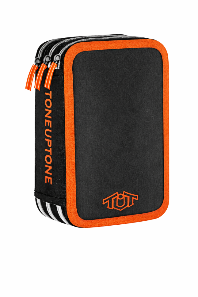TUT Neon несесер с 3 ципа, ПЪЛЕН, оранжеви кантове