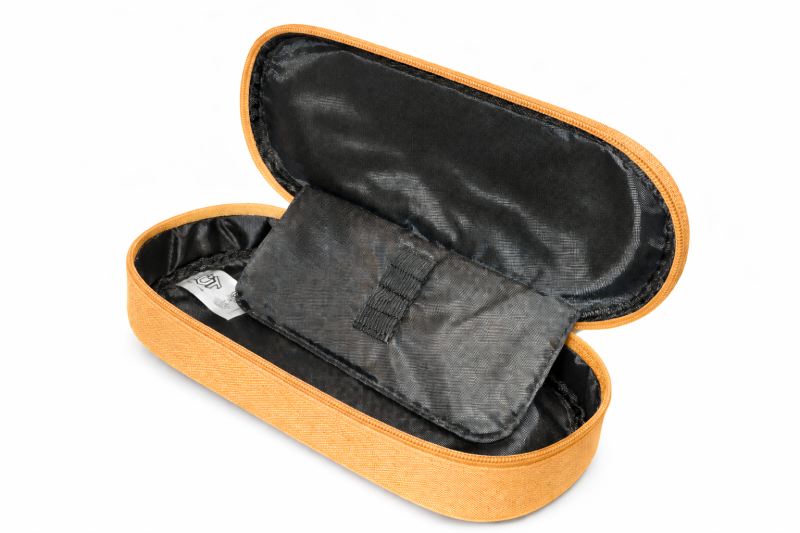 Изработен от устойчив текстилен материал с фина текстура, несесерът е лек, но здрав, и предпазва надеждно съдържанието си. Просторното основно отделение побира химикалки, моливи, маркери и други аксесоари, а здравият цип осигурява лесно и сигурно затваряне.