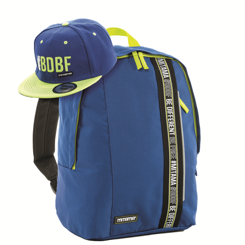 Раница Mitama - Color Touch, синьо и жълто, с подарък шапка