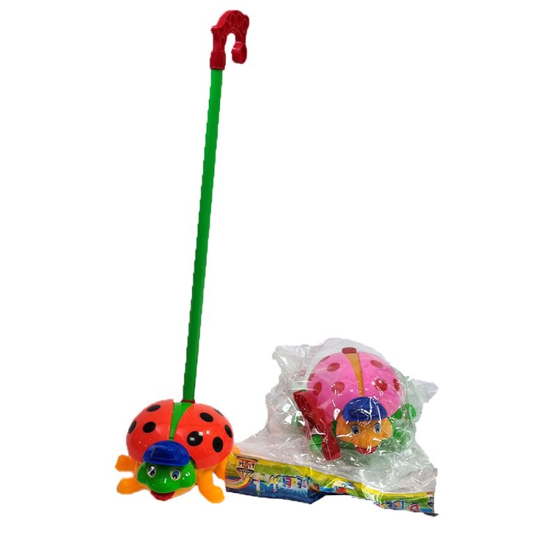 Играчка за бутане Калинка При бутане издава дрънкащ звук, движи си крилата и езика. Два цвята Размери 16х15х46 см